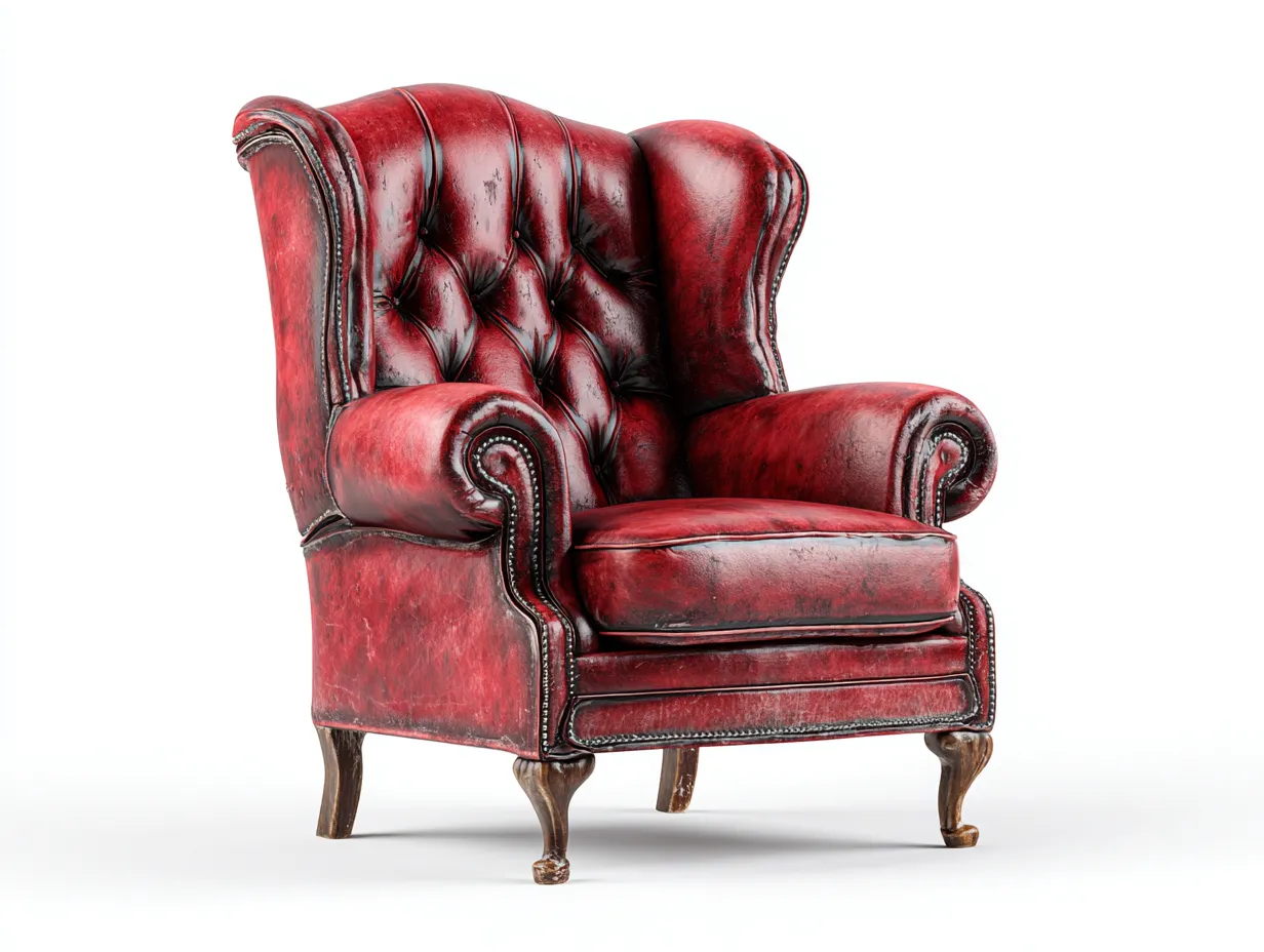 Rivestimento in pelle rosso rubino vintage con superficie dall'aspetto vissuto. La struttura è solida e l'imbottitura uniforme assicura comfort e stabilità nel tempo.